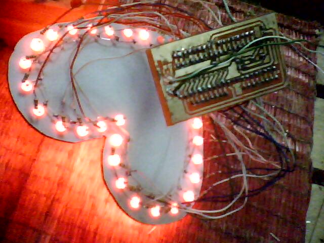 -Linh kiện:+ Mua 40 led đỏ(xanh,vàng....tùy sở thích từng người) ,mua 40 con điện trở 220 Om gắn vào chân led.